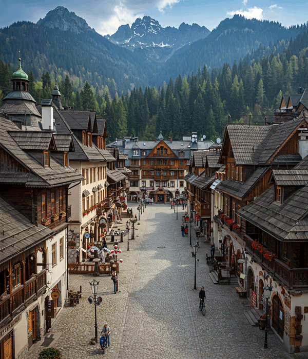 Najwyżej położone miasto w Polsce, Zakopane (750 - 1100m.n.p.m.), rozciąga się w wąskiej kotlinie pomiędzy Tatrami a pasmem Gubałówki. O jego wyjątkowości decydują przede wszystkim jedyne w kraju góry o charakterze alpejskim objęte ochroną w Tatrzańskim Parku Narodowym, góralski folklor i malownicza drewniana architektura.